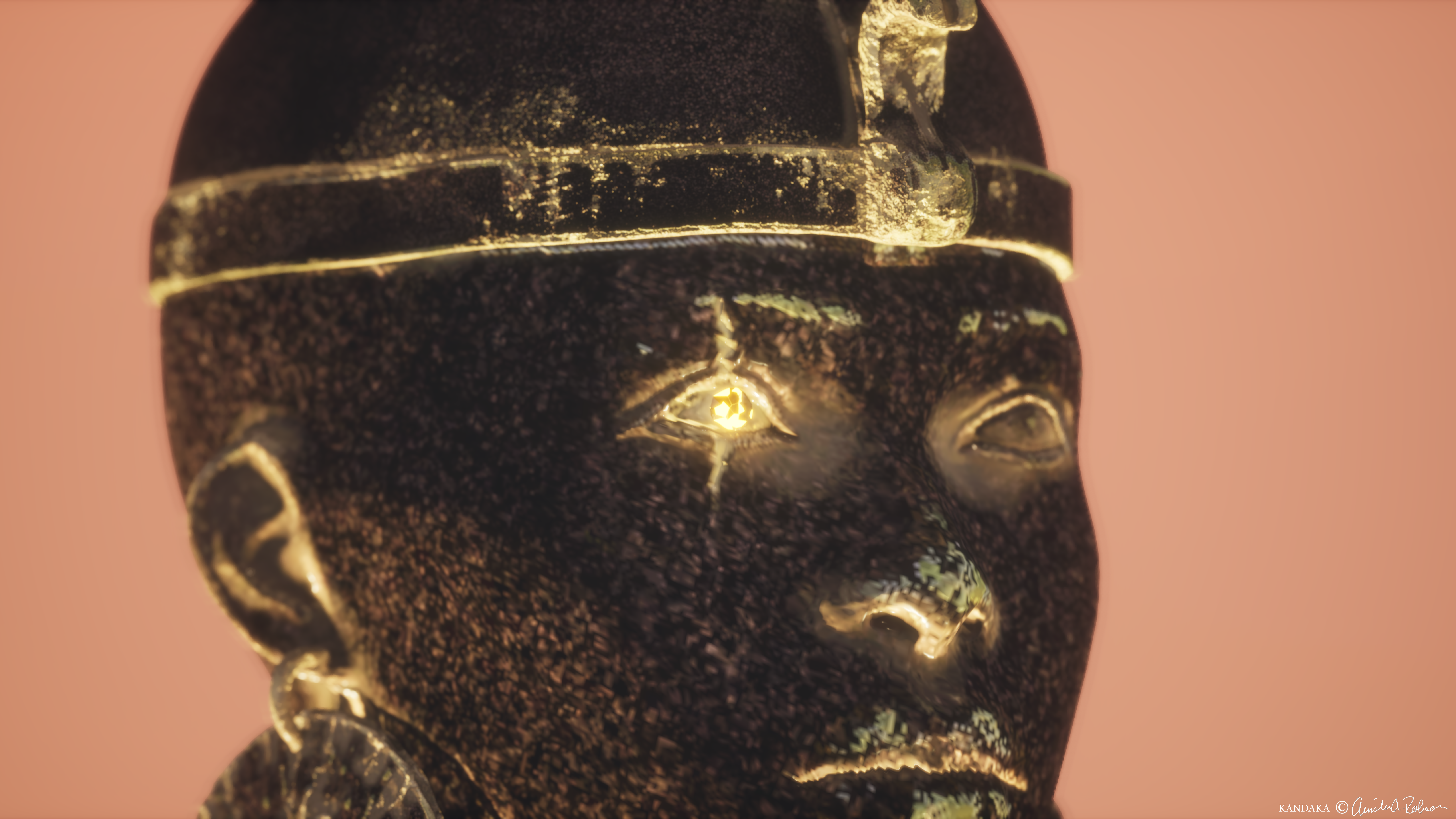 work in progressKandaka’ is a three-part installation consisting in a room-scale short film projection, a virtual reality experience, and a 3d-printed monument of Amanirenas (from 40bc)—a one-eyed warrior and ancient Kandaka (meaning royal and/or revolutionary woman) of the Kushite Empire’s last capital, Meroe, now a UNESCO world heritage site in modern day Sudan. She controlled commerce on the Nile and defeated Augustus’ Roman forces who attempted to gain control of the region. The installation is being developed with game engine technology and features extremely precise, geo-referenced ruins from the major archaeological sites in Kerma, Napata, and Meroe, all reconstructed in 3D with photogrammetry. This installation is conceived as a form of emancipatory thought and resistance to historic erasure of Nubian history, reclaiming Amanirenas’ strength, legacy, and future potentialty.